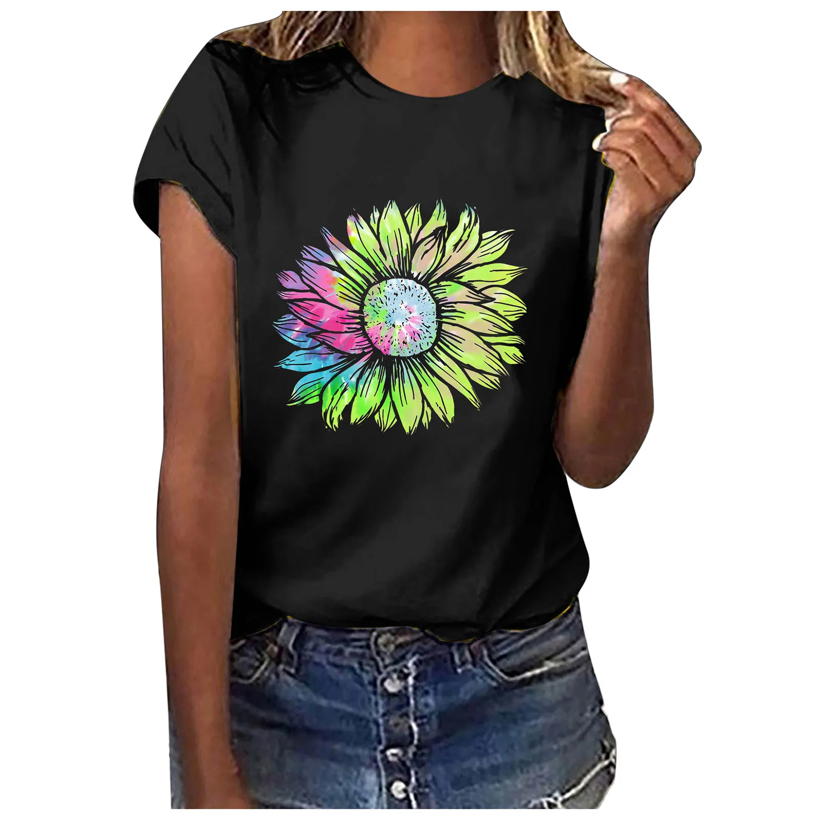 Addition Information of Cropped Crew Neck Sweat Shirt Femme Women's Casual Sunflower Print Round Neck T-shirt Short Sleeve Tops Майка Женская Футболка